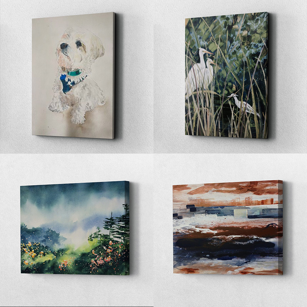 Most of my portraits are done in watercolor, on quality watercolor paper .